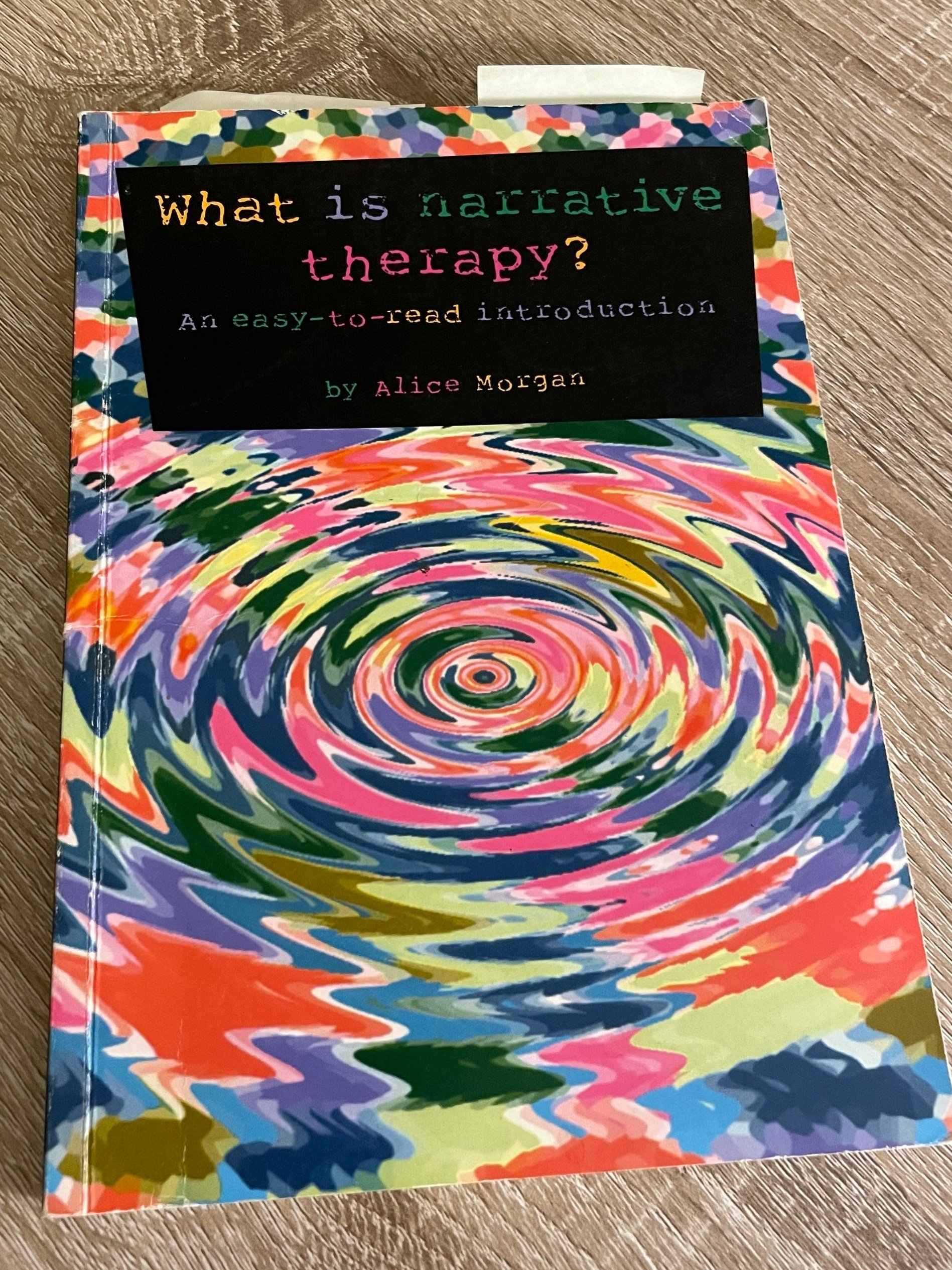 I went into graduate school expecting to be drawn to more formal therapy styles, so you can imagine my surprise when I went to the bookstore to buy my book for an elective that really interested me and it looked like this: